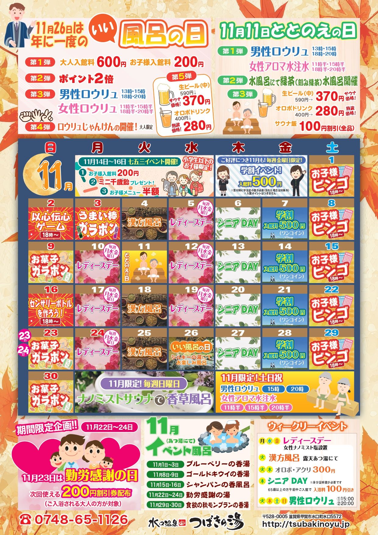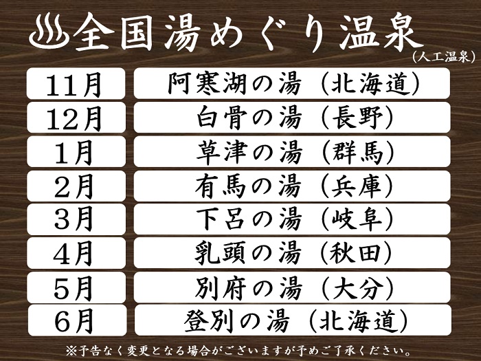 | 施設全体 | 10:00〜23:00(最終受付 22:30) ※年中無休(メンテナンスの為休館する場合があります) |