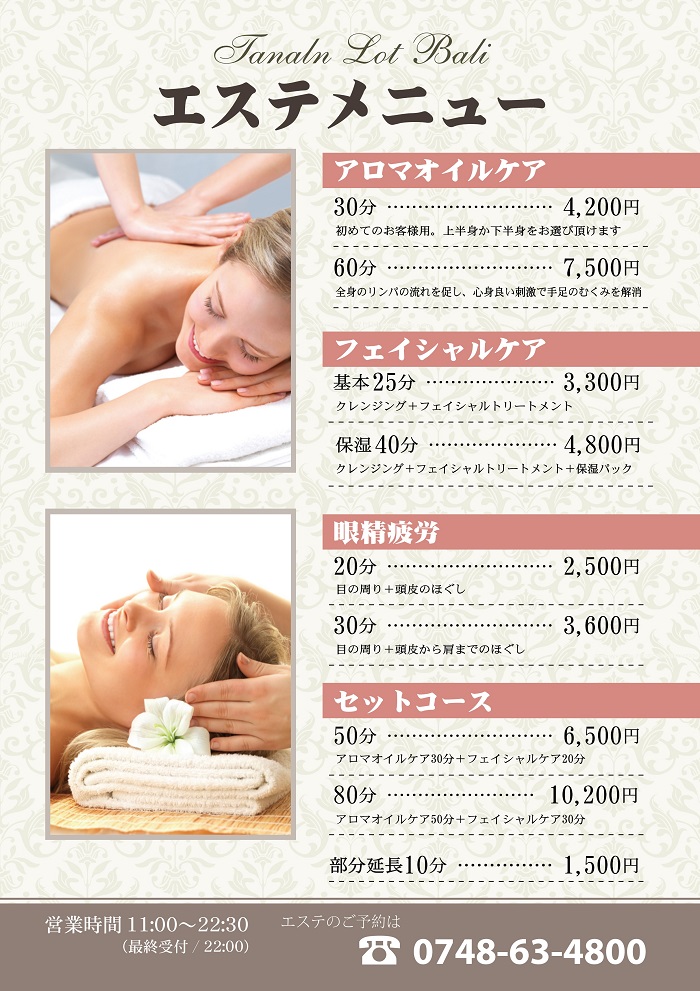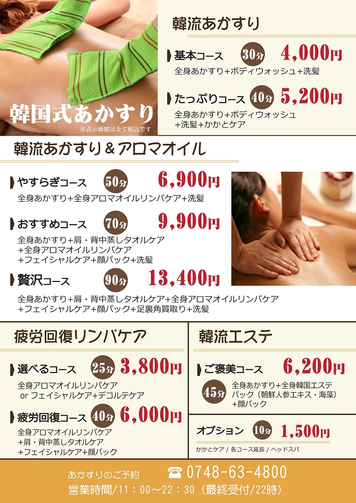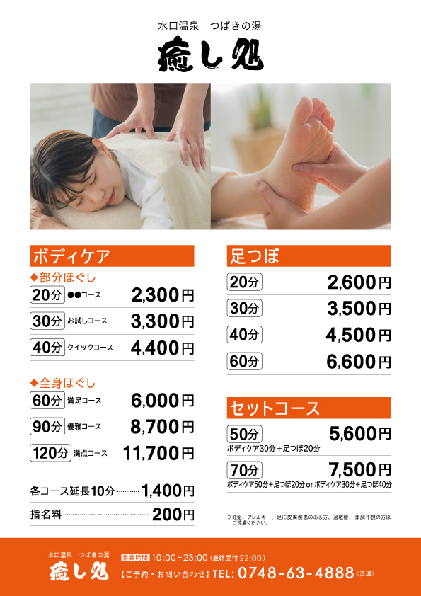 つばきの湯ではボディケア・足つぼ・韓国式あかすり・エステなど様々なリラクゼーション施設、カットサロンを備えております。